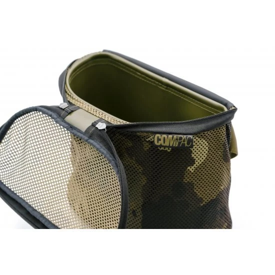 El Compac Caddy multiusos transporta cómodamente hasta 3 kg de cebo y cuenta con un cinturón lumbar totalmente ajustable que facilita la aplicación del cebo con una honda o un palo de lanzamiento. Hecho de una malla de camuflaje duradera, el Caddy también se puede usar como una bolsa seca al aire para mantener los boilies frescos por más tiempo. El inserto extraíble de EVA también lo hace perfecto para el almacenamiento de partículas o para usar como cuenco de agua cuando se disparan peces o se equilibran los aparejos.