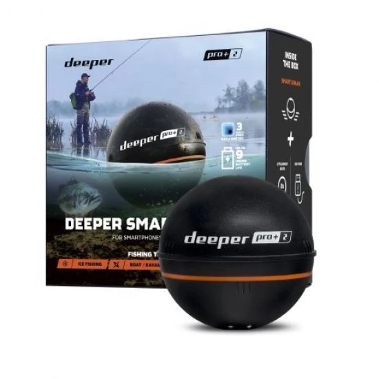 El Deeper Pro +2 es un desarrollo posterior del conocido Deeper Pro +. Mejorado y mejor que nunca, ahora con tres frecuencias de haz, imágenes más nítidas y claras, mejor rendimiento de GPS, mayor duración de la batería de hasta 9 horas (según el uso) y profundidad de escaneo de hasta 100 m/330 pies.