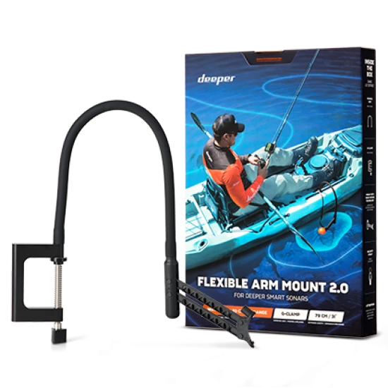 Convierta su barco, kayak o bote en un sistema de sonda de alto rendimiento. Simplemente monte su Deeper Sonar (3.0, PRO o PRO+), sujete el brazo flexible a la embarcación y use la sonda para crear mapas increíbles o rastrear peces.
