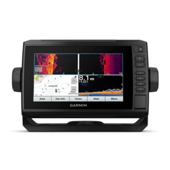 El plotter con pantalla táctil de 7″ legible a la luz del sol cuenta con un soporte de montaje de liberación rápida y un haz de transductor con sonda de exploración UHD y sonda CHIRP tradicional.