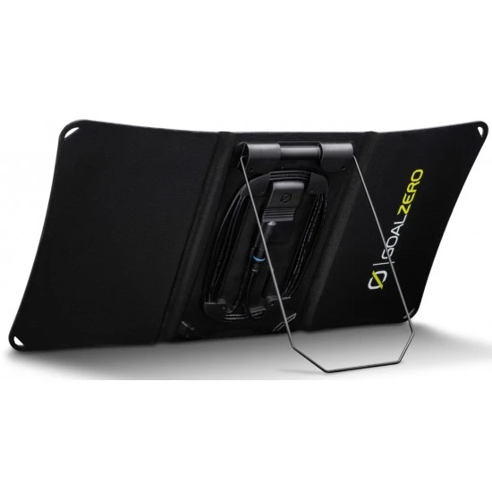 Diseñado para una carga solar más fluida, Nomad 20 tiene una base Goal Zero Flip incorporada y un soporte ajustable que encaja y se bloquea en su lugar para una mayor estabilidad.