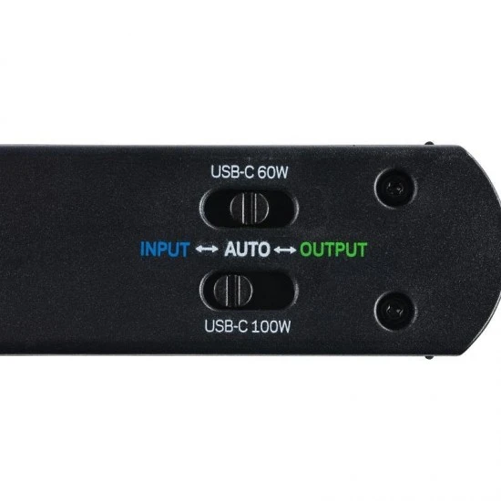 - Incluye interruptor para asignar modos de entrada, salida y automático a los puertos USB-C.
