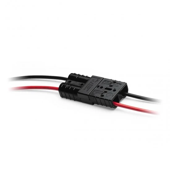 Juego de conexión robusto para cables con un diámetro de 4 a 16 mm². El conjunto consta de dos mitades de enchufe, cuatro contactos y cuatro tapones para soldar para fijar los cables en los contactos (cable no incluido).