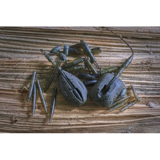 El sistema Shock Lead es un nuevo concepto para maximizar la efectividad de sus longitudes de gancho, ofreciendo una mejor oportunidad de enganche con un mínimo de manipulación. La correa tiene un rebaje en el que se puede presionar un manguito antienredos, esto significa que el eslabón del gancho comienza desde el centro de la correa; una ventaja importante sobre los sistemas de plomo convencionales. Atrás quedaron los días en los que tenía que cambiar los sistemas principales, el sistema Shock hace posible el uso de numerosas presentaciones; desde zigs hasta bolsas de PVA, las pesas de plomo Shock pueden con todo. La forma tradicional de Shock Lead le brinda la máxima efectividad de penetración del anzuelo, el perfil plano y la forma rectangular significan que este peso de plomo se puede usar en una variedad de situaciones de pesca. Ya sea para lanzar líneas, pescar debajo de su propio banco o escenarios estándar de pesca de carpas, este peso de plomo versátil puede hacerlo todo. El perfil corto de la mina significa que se puede usar en un montaje de bolsa de PVA, al igual que para una aplicación de clip de mina estándar. El acabado de camuflaje Outline hace que el plomo apenas se note en aguas muy claras, una ventaja cuando se tienta a las carpas tímidas a morder.