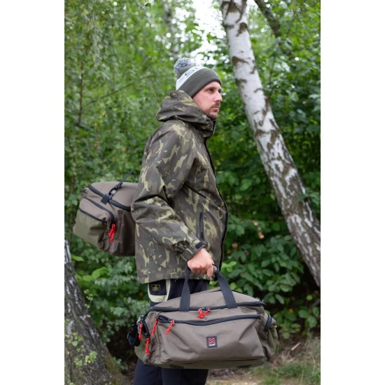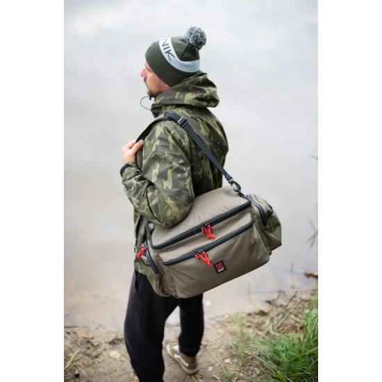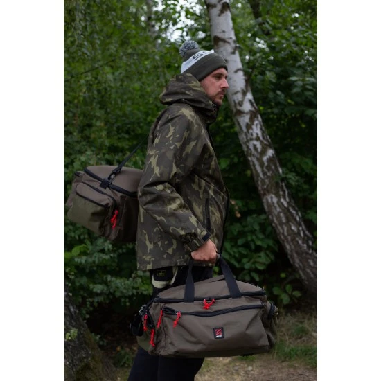 Gran bolsa de pesca multifuncional con gran compartimento principal y bolsillo frontal ampliado. Altura baja para un espacio de almacenamiento perfecto debajo de la cama y equipado con dos bolsillos laterales con cremallera. Además, hay dos bolsillos de almacenamiento de malla en el lateral y un bolsillo interior con cremallera en la tapa. Correa de hombro ajustable desmontable y asas de velcro y material base impermeable HD. Fabricado con tela 600D resistente a la abrasión y al agua con cremalleras anchas No.10 con tiradores convenientes.