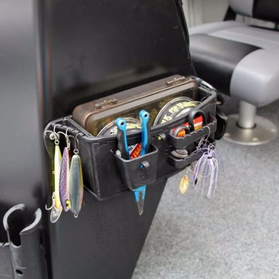 El lugar perfecto para guardar cajas de aparejos, señuelos, alicates y teléfonos móviles. Móntelo en cualquier parte de la embarcación y brinde un almacenamiento versátil para aventuras de pesca. El montaje de la consola Tackle Caddy se puede montar en cualquier superficie vertical, como en el costado de una consola o en una mesa de fileteado. Los adaptadores opcionales Railblaza 00401208 hacen que la consola Tackle Caddy sea compatible con Starport.