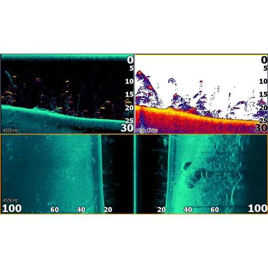 ¿Qué hace que este medidor de profundidad sea tan genial y por qué debería elegir el transductor Tripleshot de 7 pulgadas? El gancho revelador está disponible en 3 tamaños, 5, 7 y 9 pulgadas. En las 2 variantes más grandes (7 y 9) tiene la opción de conectar un transductor TripleShot, que se incluye con este conjunto como estándar . El transductor TripleShot es unas decenas de euros más caro que el transductor normal, pero es absolutamente imprescindible porque también tiene imágenes SideScan además de Sonar y DownScan, que le permite ver hasta 120 m a la izquierda y a la derecha del transductor. Ideal para mapear rápidamente un agua. Además de las imágenes nítidas, este indicador de profundidad también tiene una función de mapeo, que es única para un indicador de profundidad en este rango de precios y le brindará muchos peces adicionales.
